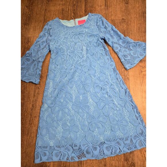 Lilly Pulitzer Ophelia Zanzibar Blue Flower Lace Bell Sleeve Above Knee S Dress
