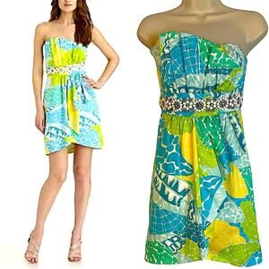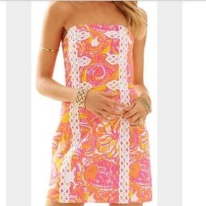 Lilly Pulitzer Original Pink Label on Cream Fabric Strapless size 4