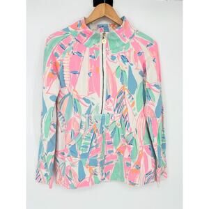 Lilly Pulitzer Out To Sea Skipper Popover Half Zip Sailboat Sweatshirt Small