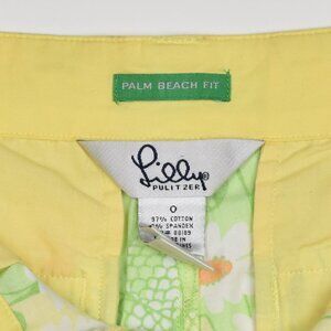 Lilly Pulitzer Palm Beach Fit Shorts. Size 0. Green, yellow, and orange floral and butterfly print. Hook and zip fly. Front and back pockets.