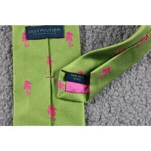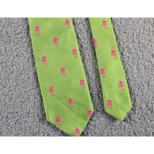 Lilly Pulitzer Palm Beach Tie Mens Silk Green Pink Seahorse Hand Made 60" USA