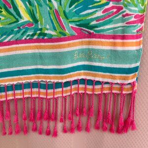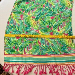 Lilly Pulitzer Palm Leaf Scarf-Wrap-Swim Cover-Up Multi Color Fringe