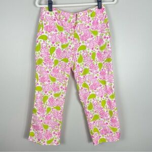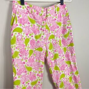 Lilly Pulitzer Pants Womens 6 Pink Green Tiger Caly Capri Tigers Play Cards