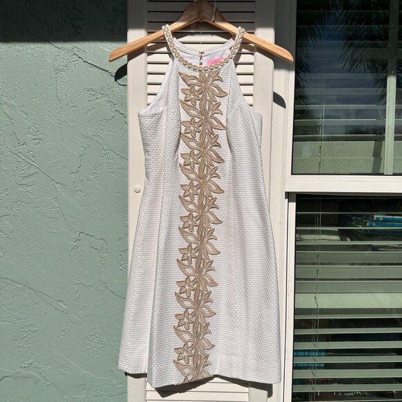 Lilly Pulitzer Parker Palm Shift Dress White Gold