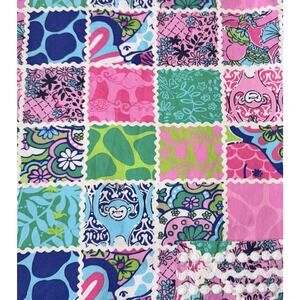 This Lilly Pulitzer shift dress in size 7 features a playful patchwork design with monkeys and giraffes, adding a colorful and vibrant touch. Made from cotton, this dress is perfect for women looking for a fun and eye-catching outfit. The shift style offers a comfortable and flattering fit, making it suitable for various occasions where you want to stand out with a unique and whimsical look.