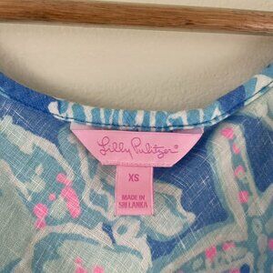 Lilly Pulitzer Patterson Linen Sleeveless Dress Into The Blue Size XS