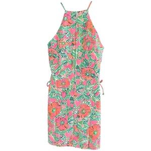 Embrace the vibrant charm of this Lilly Pulitzer Romper Mini dress, featuring a captivating mix of pink and green tones. Crafted with meticulous attention to detail, this dress ensures both comfort and standout style.