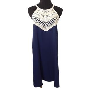 Lilly Pulitzer Pearl Soft Shift Dress Navy Blue Solid Womens 8 Sleeveless Resort