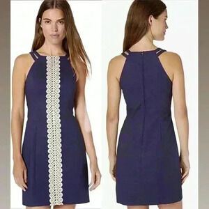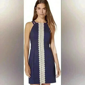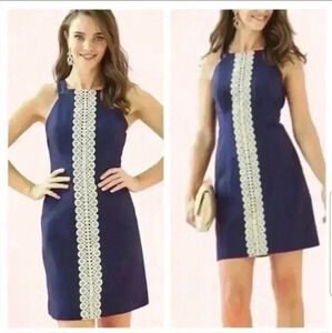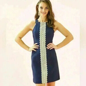Lilly Pulitzer Pearl Stretch Sleeveless Shift Mini Dress Navy Gold Size 6
