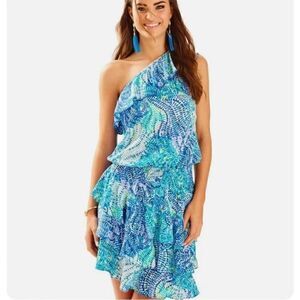 Lilly Pulitzer Peighton One Shoulder Tiered Ruffle Dress, Size S