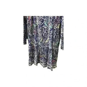 Keywords: Lilly Pulitzer, tunic dress, casual dress, summer dress, V-neck, long sleeve dress, multicolor pattern, women's fashion, beachwear, garden party dress, pre-owned.