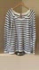 Description: navy blue and white stripe design • 100% cotton lightweight knit • Long sleeves • Scoop neckline— some wear under armpits as shown in photos