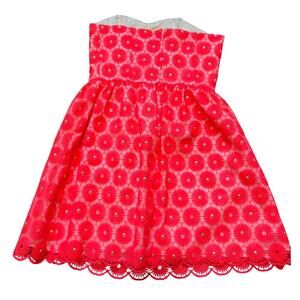 Lilly Pulitzer Peyton Strapless Fit & Flare Dress Pink Gold Pinwheel Lace Size 4