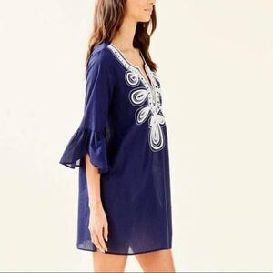 Lilly Pulitzer Piet Coverup Embroidered Mini Tunic Dress Shift Cotton XXS 273014