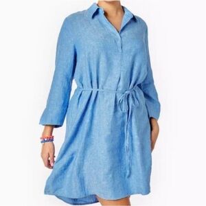 Lilly Pulitzer Pilar Tunic 3/4 Sleeve Linen Dress Beckon Blue Size Small