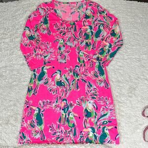 Lilly Pulitzer Pima Cotton Kristen Pink Toucan Tropical Dress Vacation Summer