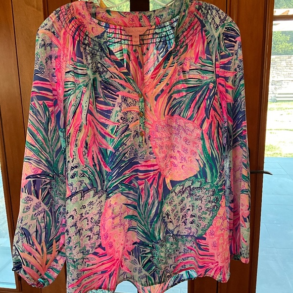 Lilly Pulitzer Pineapple Print Silky Blouse