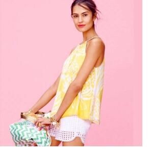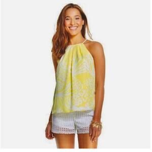 Lilly Pulitzer Pineapple Punch yellow white floral halter tank luxury resort