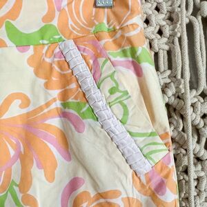 Fun and colorful Lilly Pulitzer skirt featuring the rare "What a Wonderful World" pineapple and martini print. Classic above-the-knee silhouette with a side zip and soft cotton feel. Vibrant and playful — great for summer, brunch, or vacation looks.