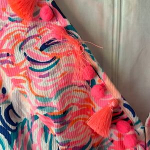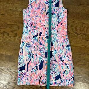 Lilly Pulitzer Pink Blue Print Shift Dress Tassels Preppy