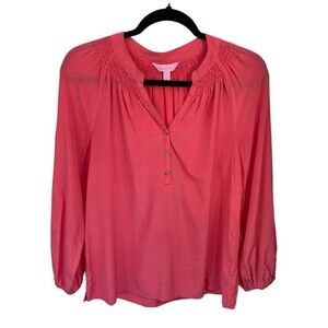 Lilly Pulitzer Pink Elsa Silk Blouse Size Small Barbie Core 18" pit to pit 24" length