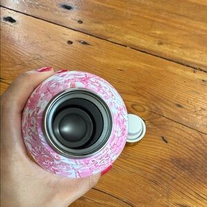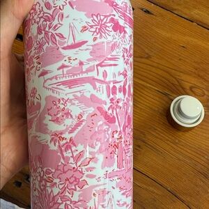 Lilly Pulitzer Pink Floral Water Bottle with Gold Lid