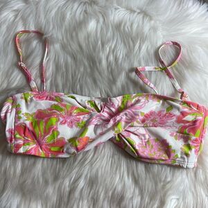 Lilly Pulitzer Pink Floral Bandeau Swim Top Sz M