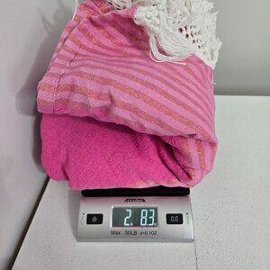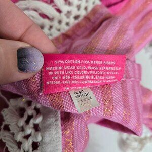 Lilly Pulitzer Pink Gold Large Beach Blanket White Fringe 66"x69" Cotton Vaca
