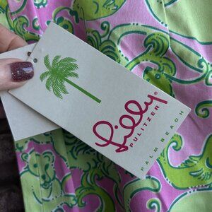 Lilly Pulitzer Pink Green Animal Lion Fish Print Wide Leg NWT Size 2