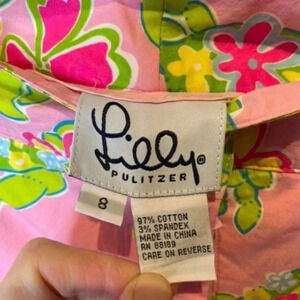 Lilly Pulitzer Pink Green Crab Floral Capri Cropped Ankle Pants Size 8. These pants are pre-owned. Good condition. No flaws. Measurements: 15.5 inch waist 31 inch full length 22.5 inch inseam 10 inch rise