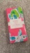 Bright pink crib sheet with green and blue floral design. Organic cotton material.