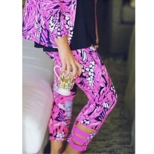 Lilly Pulitzer Pink Navy A Jungle in Here Luxetic Weekender Cropped Pants