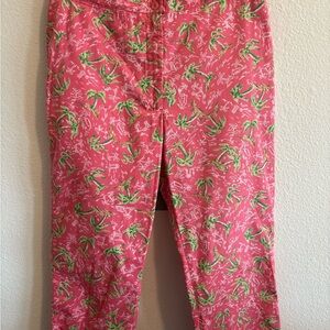 Lilly Pulitzer Pink Palm Tree Print Capri Pants Women’s 8 Tropical