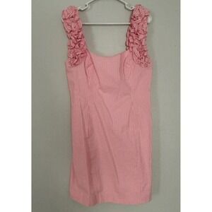 Lilly Pulitzer Pink Seersucker Ruffle Strap Sheath Dress Size 10