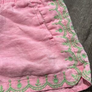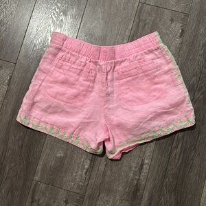 Lilly Pulitzer Pink Shandy LARYN LINEN SHORTS Embroidered 4" Pull-On Small