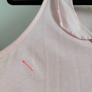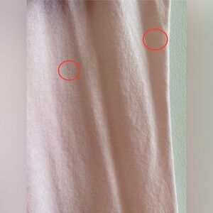 In good condition does have some small spots on the back and a pin size hole on the collar. Has a very small faint stain by the armpit (see photos for reference)