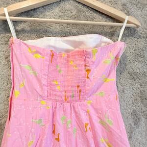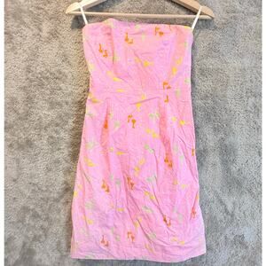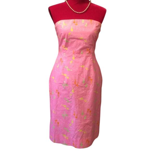 Lilly Pulitzer Pink Strapless Audrey Dress Crane Bird Print Sheath 0 XS