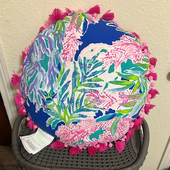 Lilly Pulitzer Pink Tassel Pom Pom Round Pillow