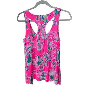 Lilly Pulitzer Pink Tropical Print Racerback Tank Top Womens Size S
