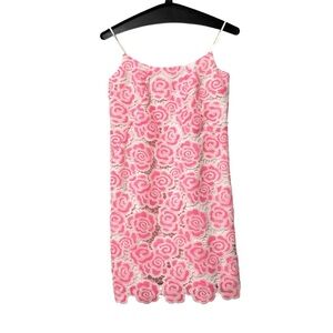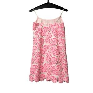 Lilly Pulitzer Pink White Beth Rose Lace Mini Slip Dress Size 0 Preppy Vacation Resortwear Love Feminine