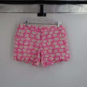 Lilly Pulitzer Pink White Elephant Scalloped Shorts Size 10