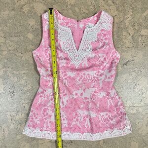 Lilly Pulitzer Pink White Rhino Run for the Roses Tunic Sleeveless Size 2