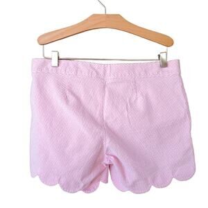 The 5 inch shorts are a must have Lilly staple! This pink scalloped seersucker short is perfect for your favorite tanks, tees and button downs.