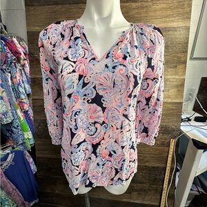 Lilly Pulitzer Pink and Blue Beach Graphic Blouse XS