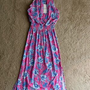 Lilly Pulitzer Pink and Blue Floral Midi Dress