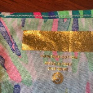 Embrace the vibrant charm of this Lilly Pulitzer coverup dress, featuring a delightful blend of pink and green hues. Perfect for a day at the beach or lounging by the pool, this dress combines style and comfort effortlessly. Its lightweight fabric ensures you stay cool and chic under the sun.