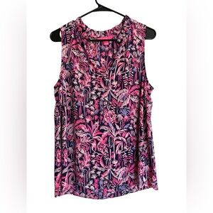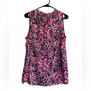 Lilly Pulitzer Pink and White Sleeveless Graphic Blouse