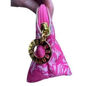 This Lilly Pulitzer cosmetic bag showcases a vibrant pink color with delicate floral patterns, perfect for organizing your beauty essentials. Made from durable fabric, it features a sleek design with a secure zipper closure. Ideal for travel or daily use, this bag combines elegance with practicality.