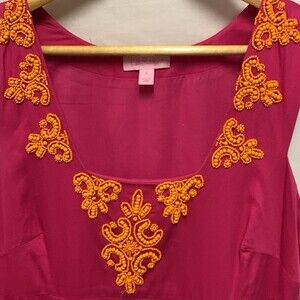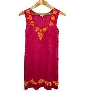 Lilly Pulitzer Pink with Orange Beading Detail Squareneck Sleeveless Dress Sz 2