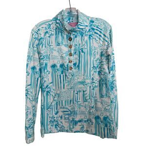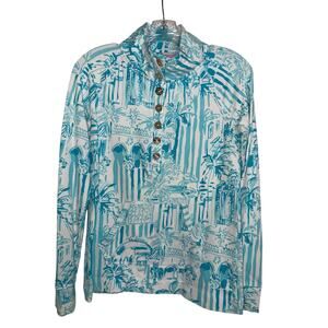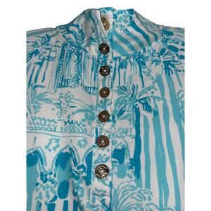 Lilly Pulitzer Popover Blue and White Print Gold Buttons - size XS